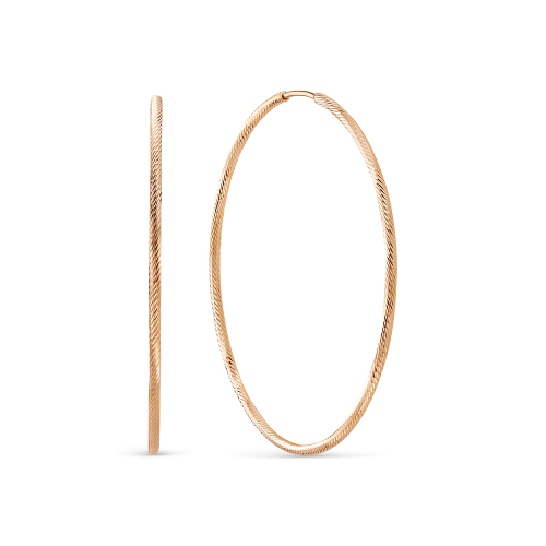 Стильные серьги - конго с алмазной гравировкой выполнены из красного золота 585 пробы