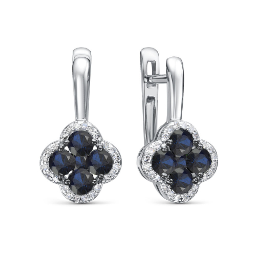 Роскошные серьги, украшенные натуральными сапфирами и бриллиантами, выполнены из белого золота 585 пробы. Бриллианты и сапфиры на белом золоте выглядят особенно эффектно, привлекая взгляд своим сиянием. Тип замка - английский, самый надежный и удобный.