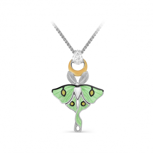 Стильное цепочное колье из родированного серебра 925 пробы с фианитом и горячей эмалью от российского бренда Kabarovsky
