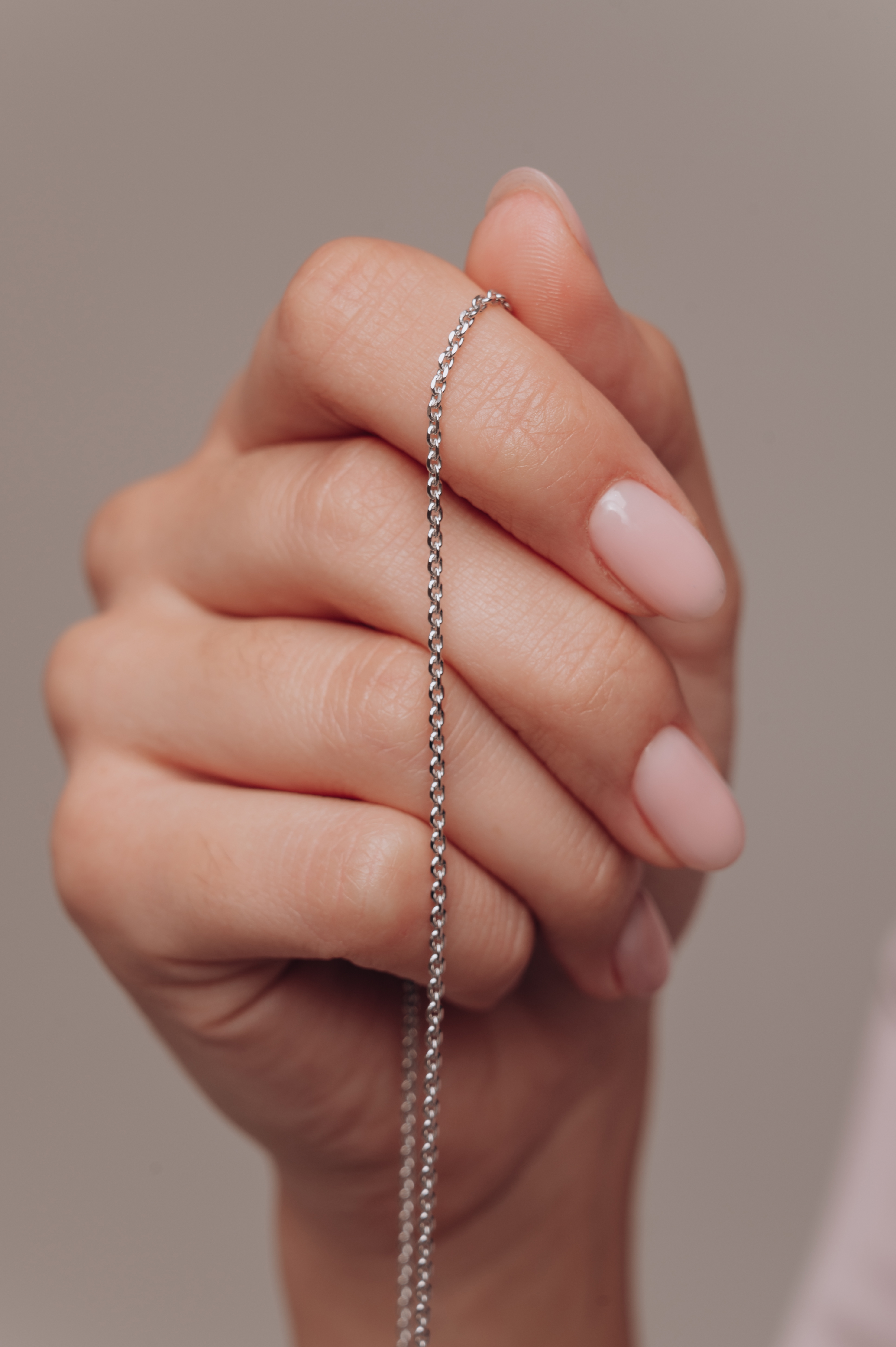 Полновесный браслет из белого золота 585 пробы исполнен традиционной формой якорного плетения с эффектной алмазной гранью