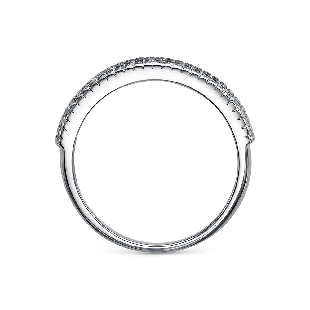 Широкое кольцо украшенное сверкающей россыпью бриллиантов, выполнено из белого золота 585 пробы