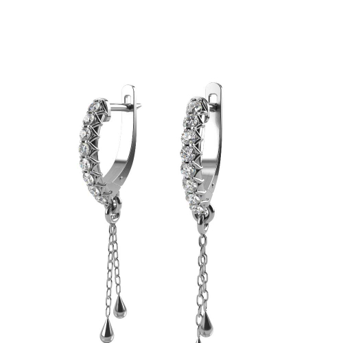 Роскошные длинные серьги, выполнены из белого золота 585 пробы, украшены великолепными фианитами.