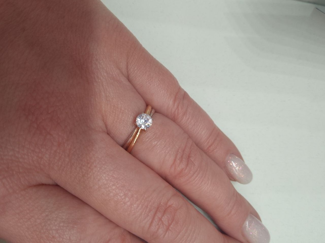 Очень оригинальное кольцо из комбинированного золота, в классическом стиле.Комфортно сидит на пальце! Я очень довольна !