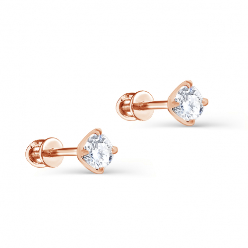 Изящные серьги - пусеты из красного золота 585 пробы с бриллиантами полной огранки. Полная огранка бриллианта, круглая 57 граней, является традиционной русской огранкой, при которой наилучшим образом передается игра и блеск бриллианта. Тип замка - винтовой, самый надежный и комфортный. Изделие представлено брендом KABAROVSKY. Средняя характеристика камней на артикул: 2 Бр Кр-57 0.328ct; К украшению прилагается сертификат от производителя о подлинности драгоценных камней.