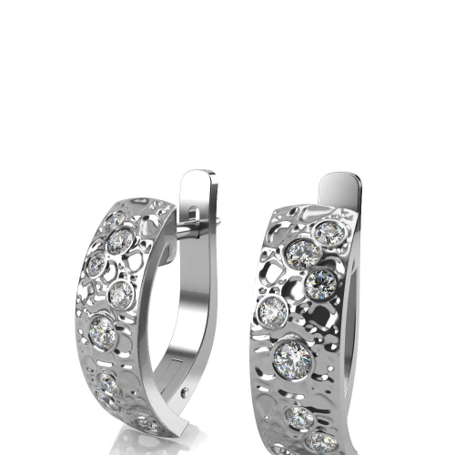 Стильные серьги из белого золота 585 пробы с сияющими бриллиантами.