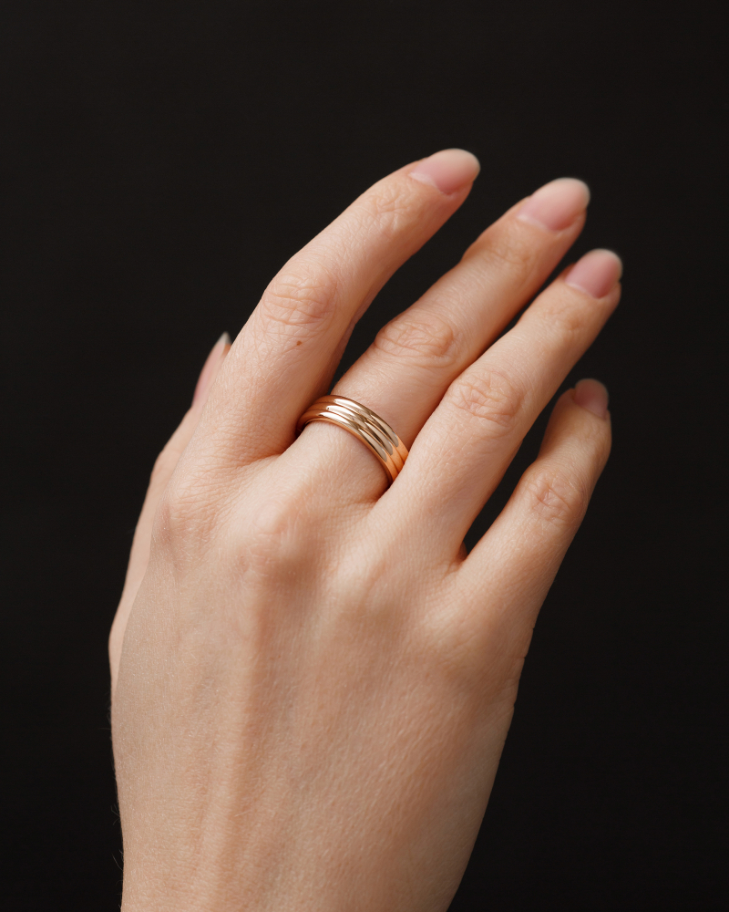 Кольцо с обёмным и стильным дизайном, выполнено из красного золота 585 пробы