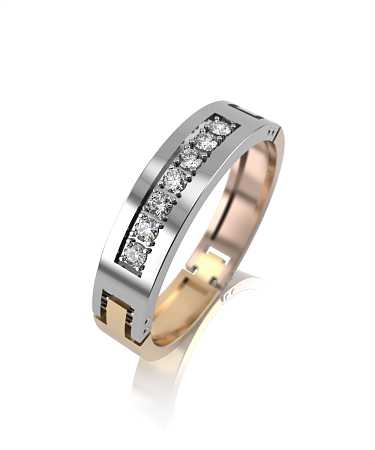 Кольцо обручальное, комбинированное золото, бриллиант, проба 585
