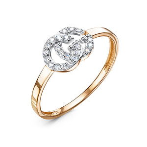 Стильное кольцо оригинального дизайна из коллекции EuroTrends, выполнено из красного и белого золота 585 пробы, украшено сияющими фианитами