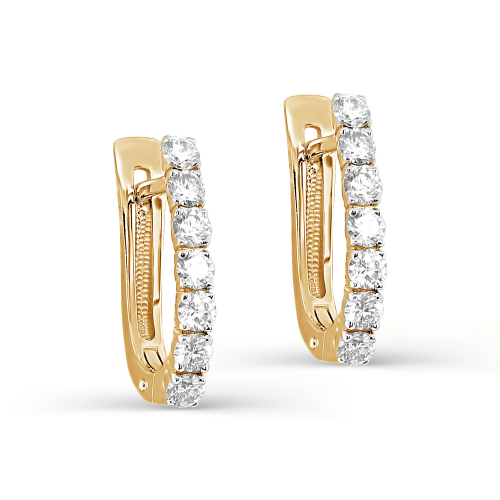 Изящные серьги выполнены из жёлтого золота 585 пробы, украшены дорожками бриллиантов