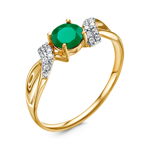 Элегантное кольцо с натуральным изумрудом, красоту и насыщенный цвет которого подчёркивают дорожки сверкающих бриллиантов, выполнено из белого и жёлтого золота 585 пробы