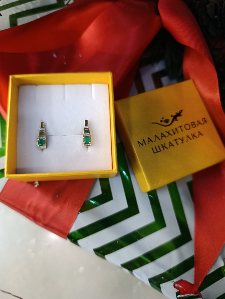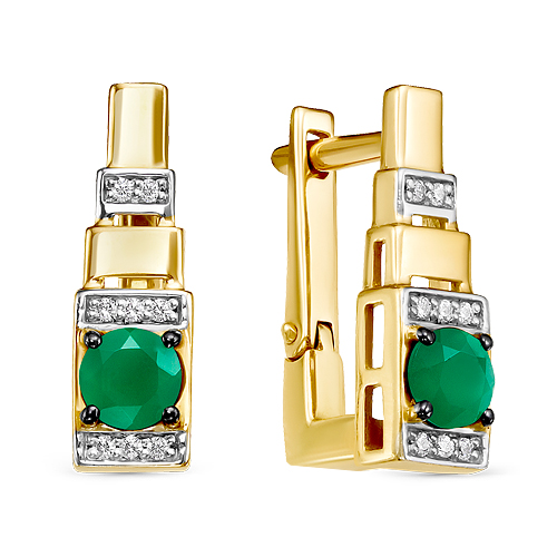 Серьги с натуральными изумрудами, красоту и насыщенный цвет которых подчёркивают изящные дорожки бриллиантов, выполнены из белого и жёлтого золота 585 пробы