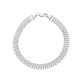 Браслет с фантазийным плетением выполнен из родированного серебра 925 пробы