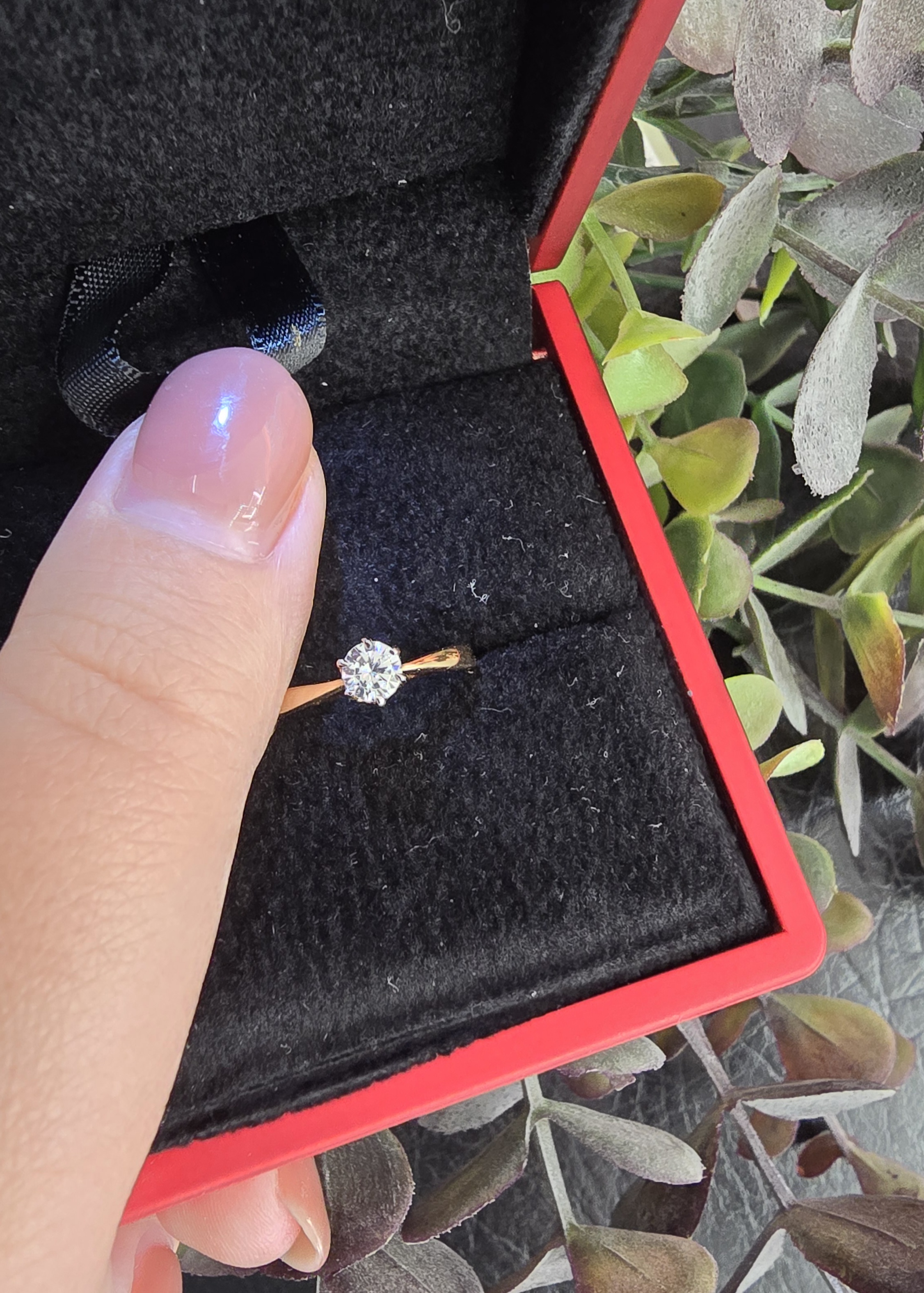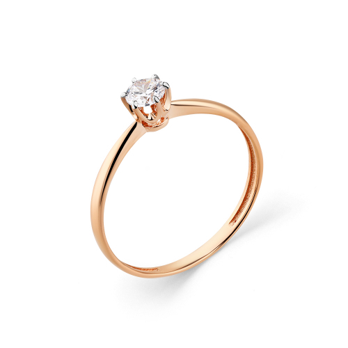 Кольцо с сверкающим фианитом выполнено из красного золота 585 пробы