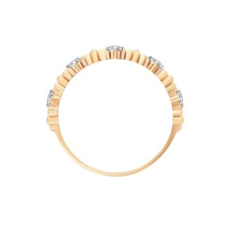 Изящное кольцо, украшенное фианитами, выполнено с сочетанием красного и белого золота 585 пробы. Лапки кастов подсвечены каплями родия, которые придают камням больше блеска, объема и глубины. Изделие представлено брендом CARLIN. Вставки: 5 Фианит. В комплект поставки входит: