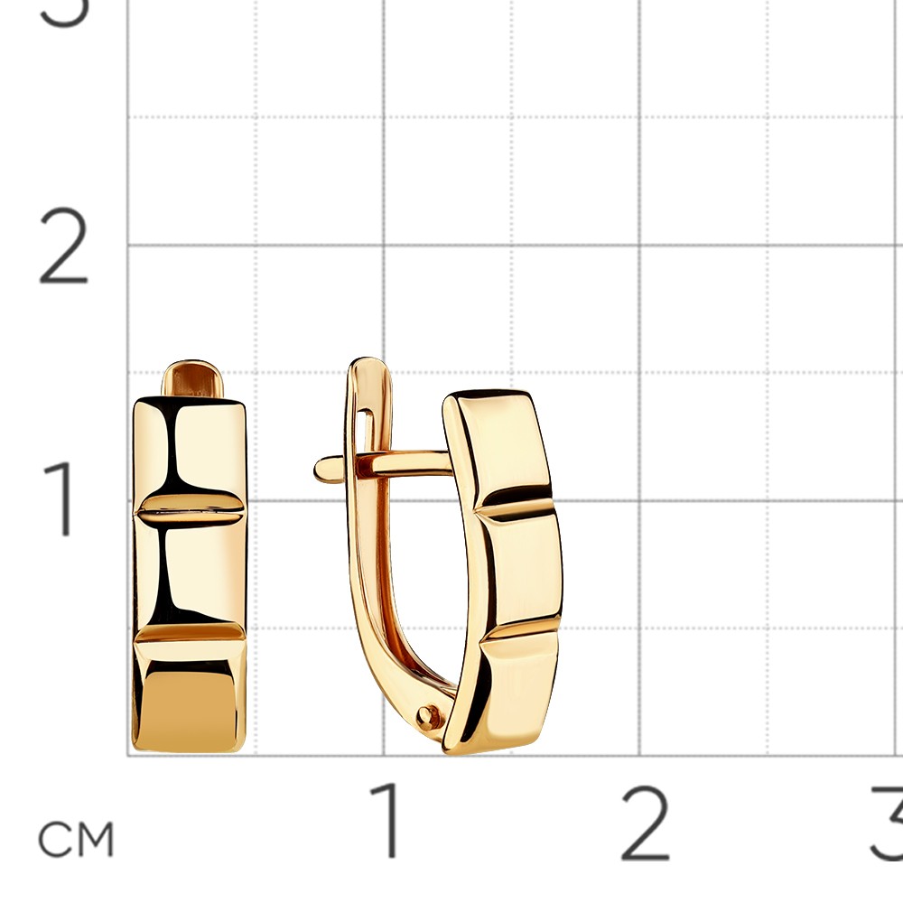 Стильные фактурные серьги оригинального дизайна, выполнены в красном золоте 585 пробы. Тип замка - английский, самый надежный и удобный. Украшение без камней – идеальный вариант на повседневную носку. Изделие представлено брендом: CARLIN. В комплект поставки входит: