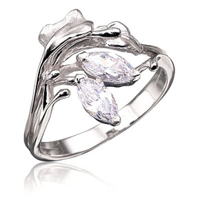 Нежное кольцо, выполнено из серебра 925 пробы, украшено сияющими фианитами Сваровски.