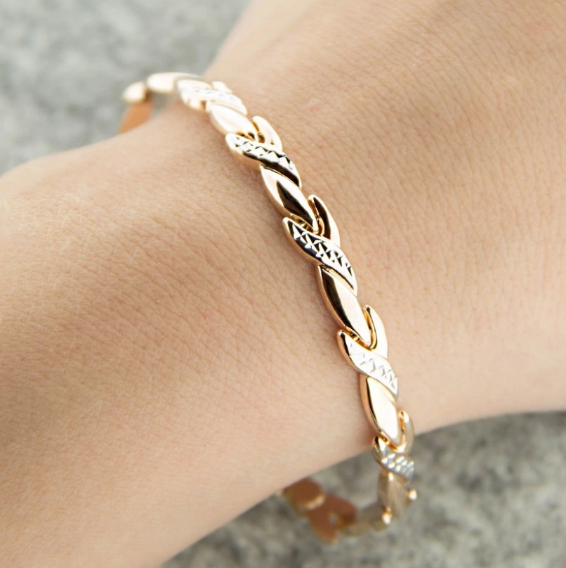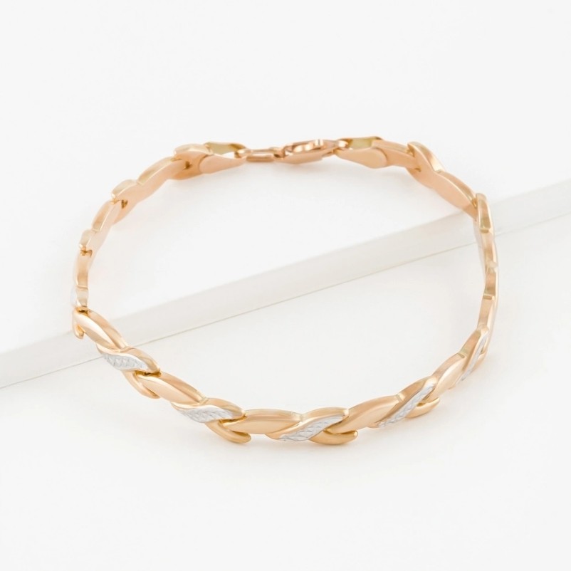 Нежный роликсовый браслет из красного и белого золота 585 пробы с оригинальной обработкой алмазной гранью — это воплощение элегантности и изысканности