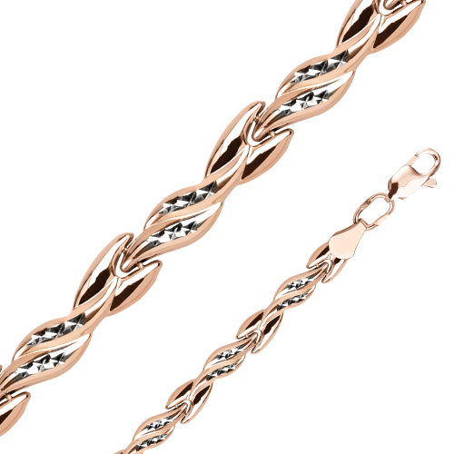 Браслет выполнен с сочетанием красного и белого золота 585 пробы с алмазной гранью