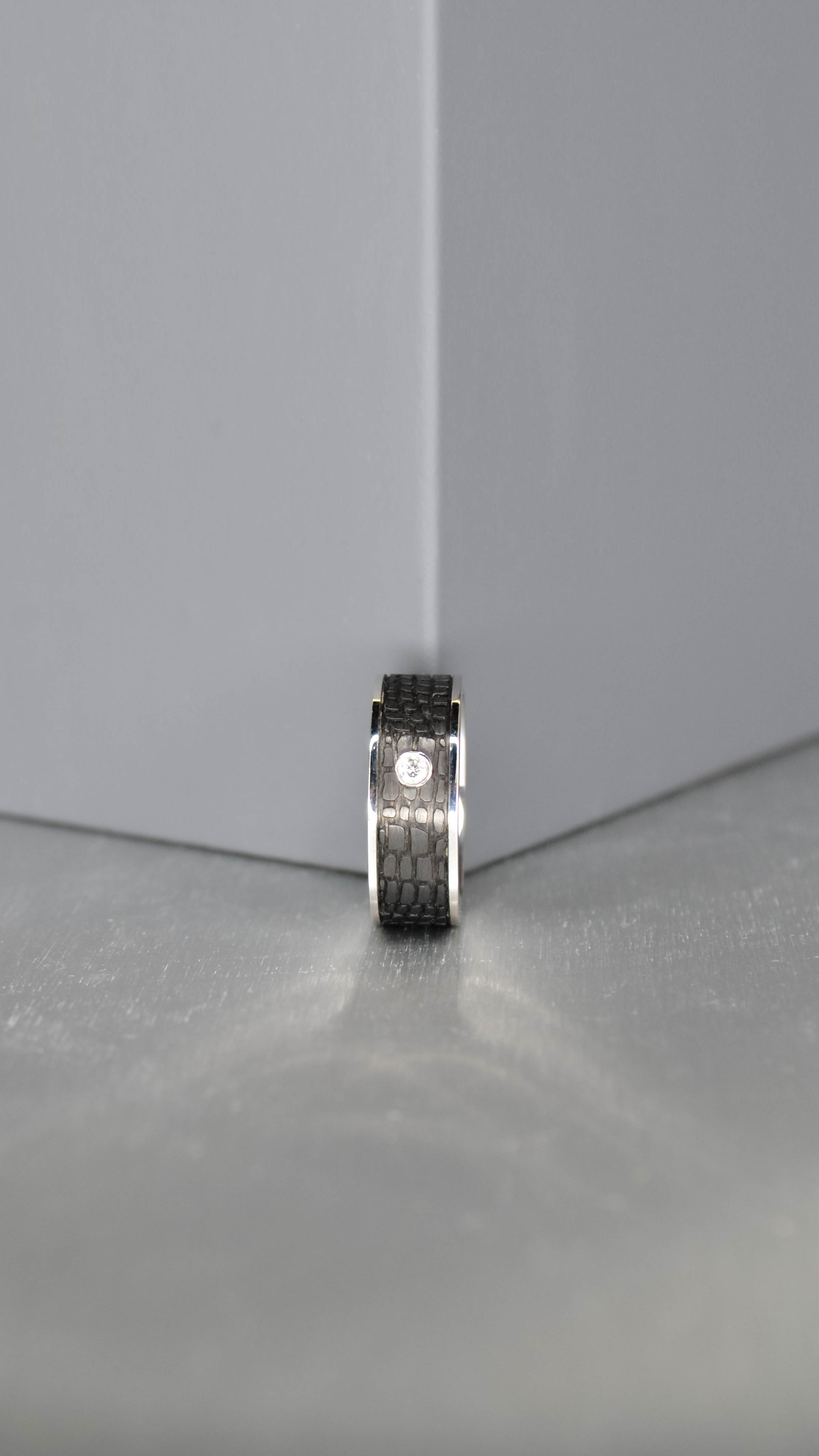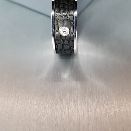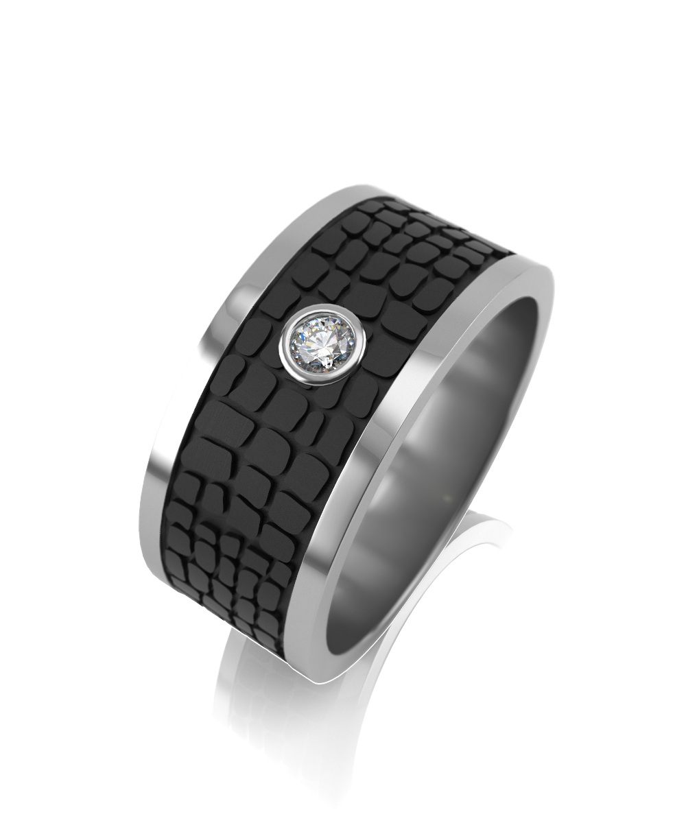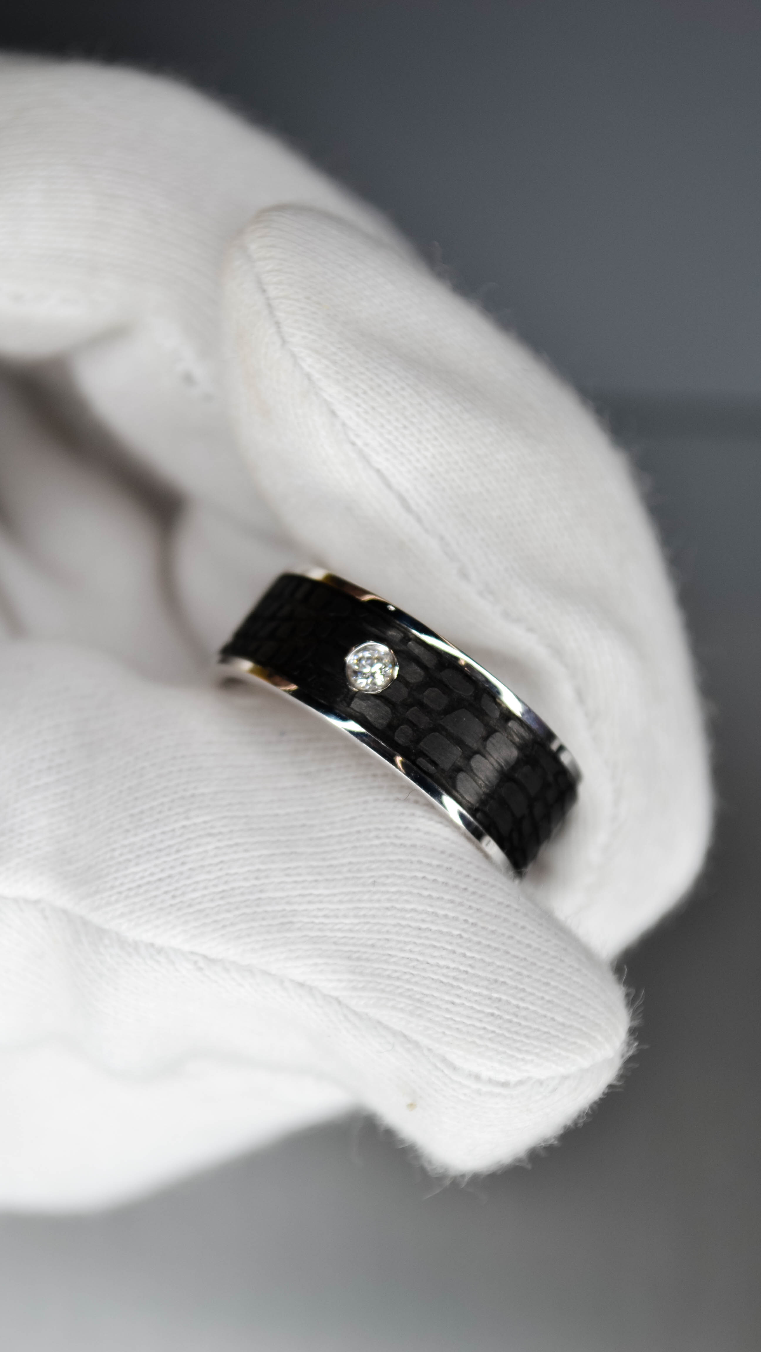 Особую оригинальность кольцу придает текстура на карбоне, в виде кожи крокодила.