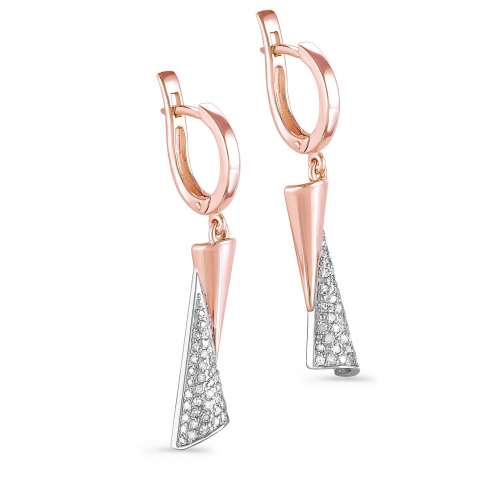 Длинные серьги созданы из элегантного сочетания красного и белого золота высшей 585 пробы, украшенные изысканной россыпью сверкающих бриллиантов, подчеркивающих красоту изделия