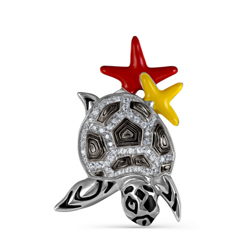 Подвеска, от бренда Кабаровски, в виде черепахи, выполнена из серебра 925 пробы, с рисунком из фианитов и цветной холодной эмали