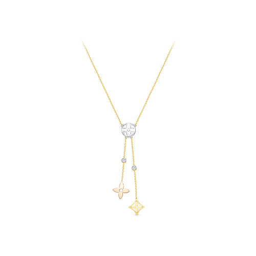 Стильное цепочное колье с декоративными вставками, украшенное яркими фианитами, выполнено из желтого и белого золота 585 пробы