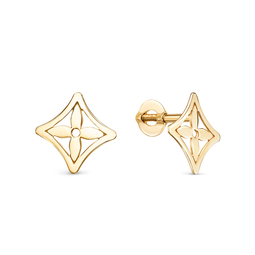 Оригинальные серьги - пусеты выполнены из желтого золота 585 пробы