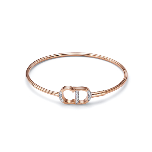 Оригинальный жесткий браслет украшенный яркими фианитами выполнен из красного золота 585 пробы