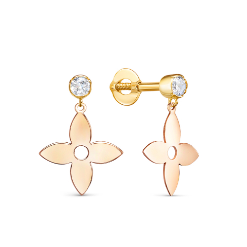 Милые серьги-пусеты, в виде цветка, выполнены из жёлтого золота 585 пробы