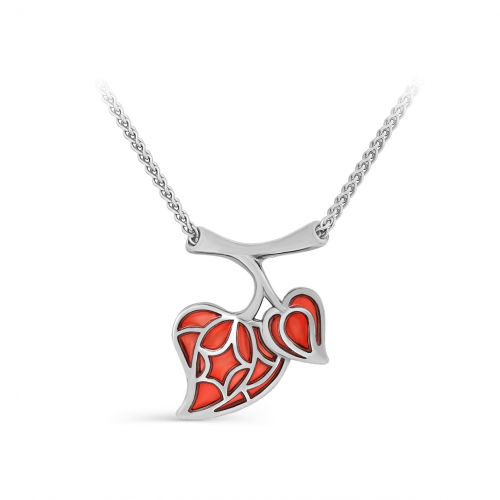 Цепочное колье из серебра 925 пробы с подвеской в виде красных листиков, украшено холодной эмалью от российского бренда Kabarovsky