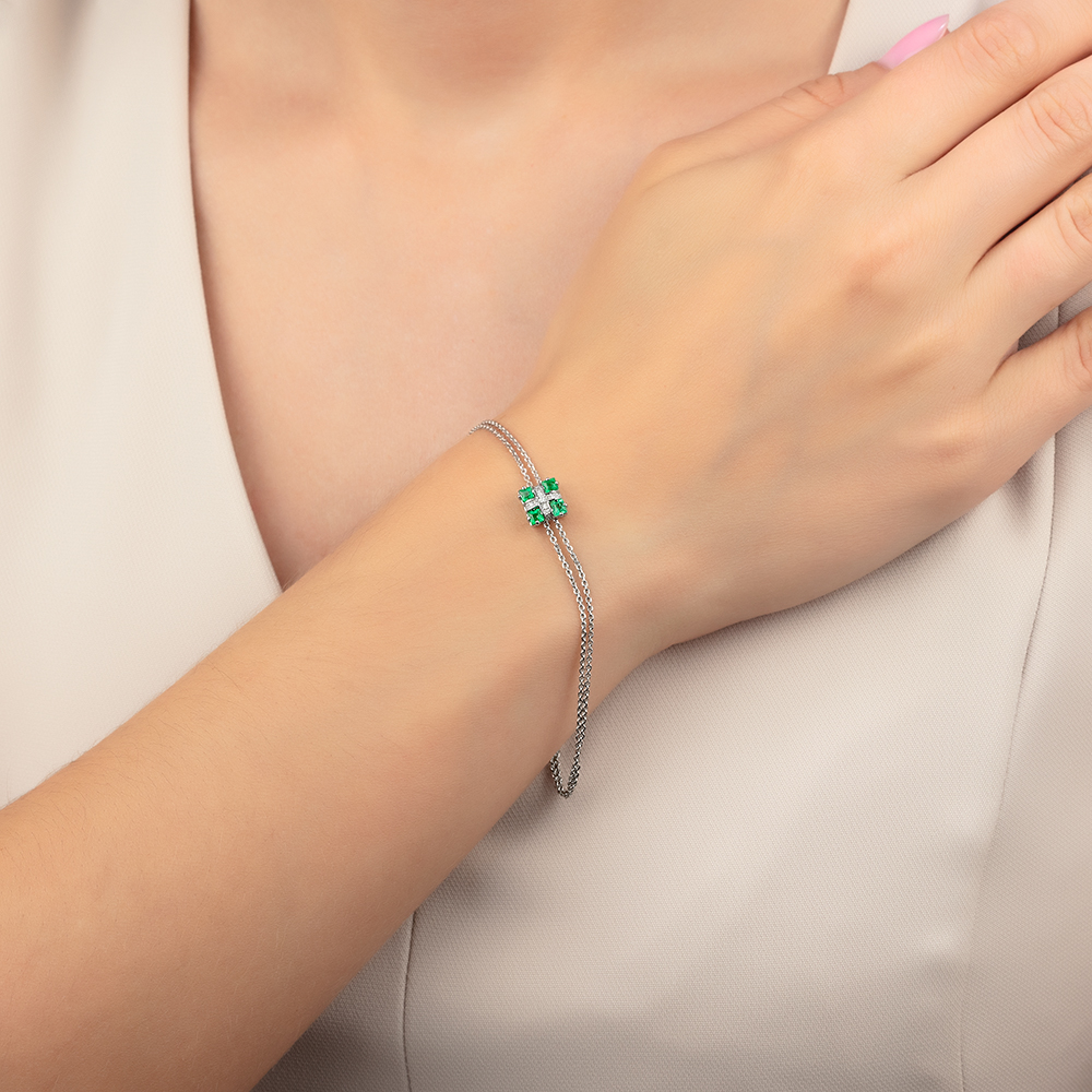 Искала себе браслет, который бы подчеркивал мой стиль и не выглядел через чур. нашла этот браслет в белом золоте с изумрудами. Он простой , но в тоже время имеет особенный шарм. Легко сочетается с разной одеждой.