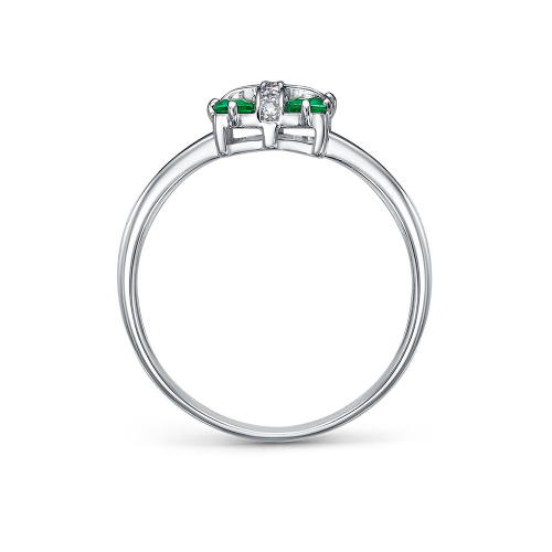 Изящное кольцо с изумрудами и бриллиантами, выполнено из белого золота 585 пробы