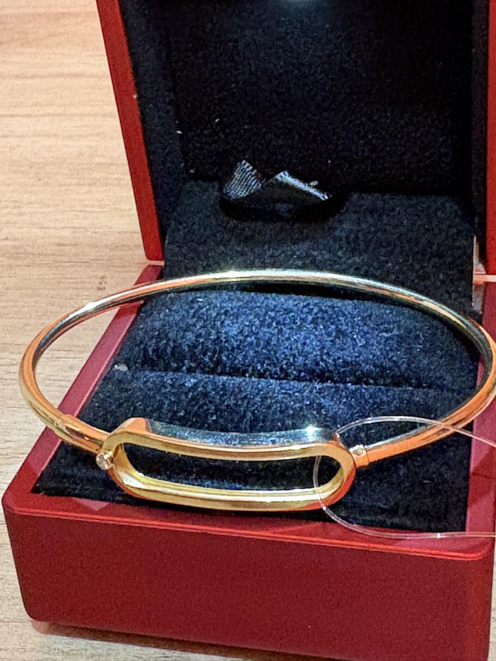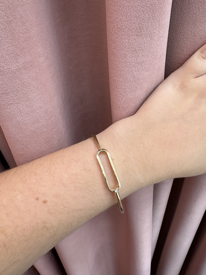 Стильный жесткий женский браслет из теплого желтого золота 585 пробы — это вечная классика, которая никогда не выйдет из моды