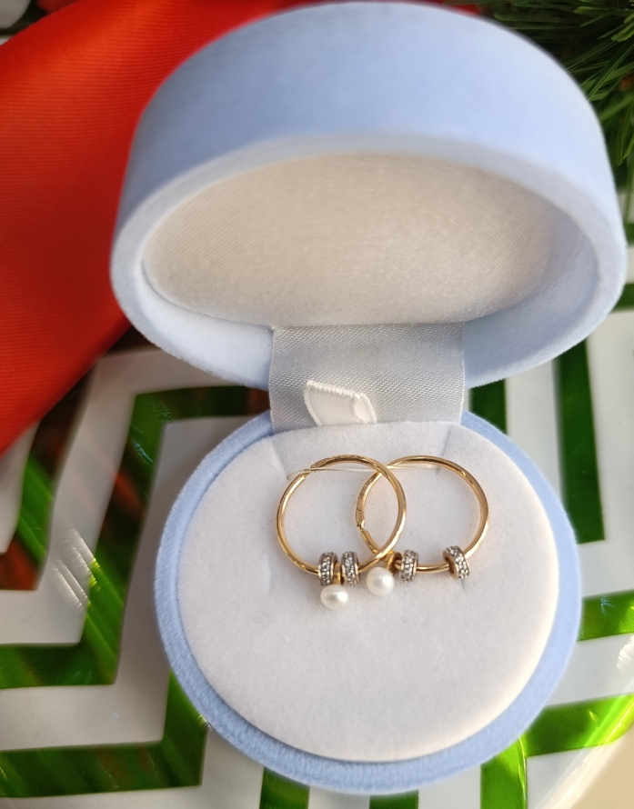 Серьги-кольца выполнены из красного золота 585 пробы, со вставками из жемчуга и фианитов от бренда Veronika