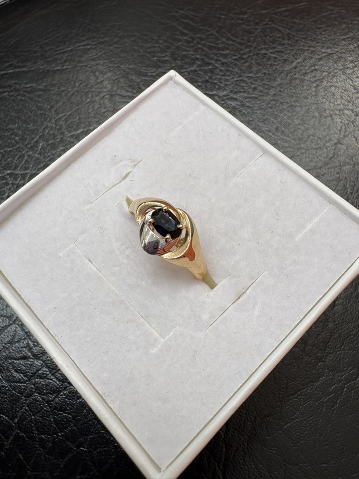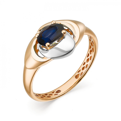 Роскошное кольцо, выполнено в сочетании красного и белого золота 585 пробы, украшено великолепным сапфиром синего цвета