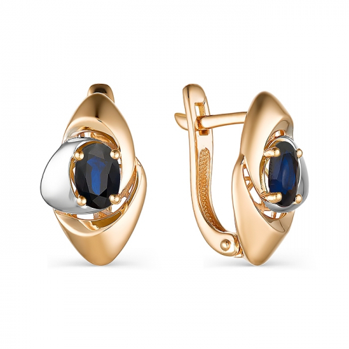 Роскошные серьги, выполнены в сочетании красного и белого золота 585 пробы, украшены сапфирами синего цвета