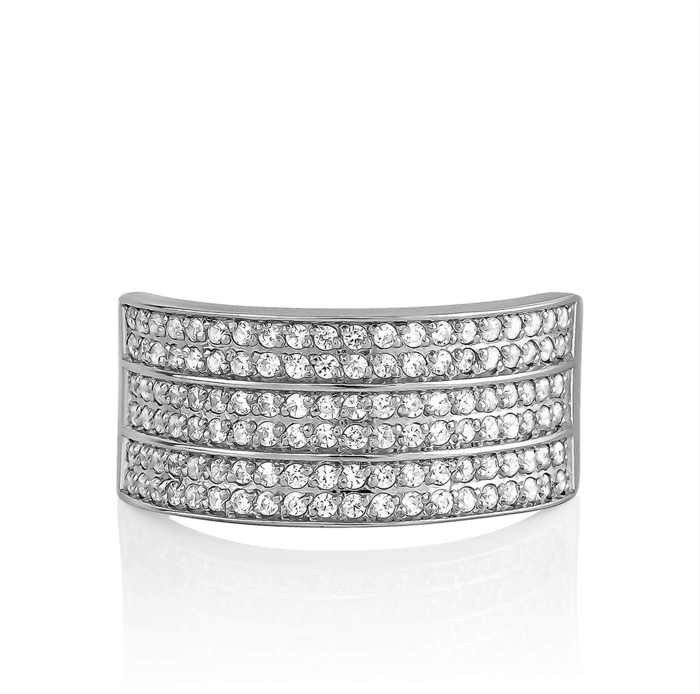 Стильное кольцо, выполнено из серебра 925 пробы, украшено россыпью сверкающих фианитов