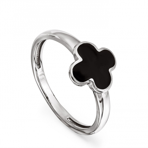 Яркое кольцо, выполнено из серебра 925 пробы с родиевым покрытием, украшено холодной эмалью чёрного цвета
