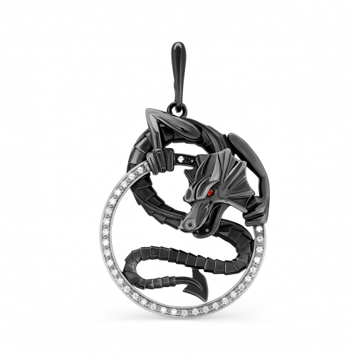 Подвеска в виде дракона, выполнена из серебра 925 пробы, украшена искрящейся россыпью фианитов