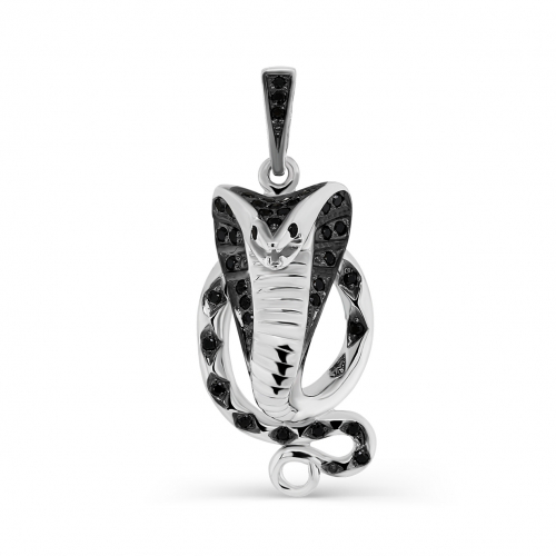 Подвеска в виде кобры, выполнена из серебра 925 пробы, украшена россыпью фианитов черного цвета