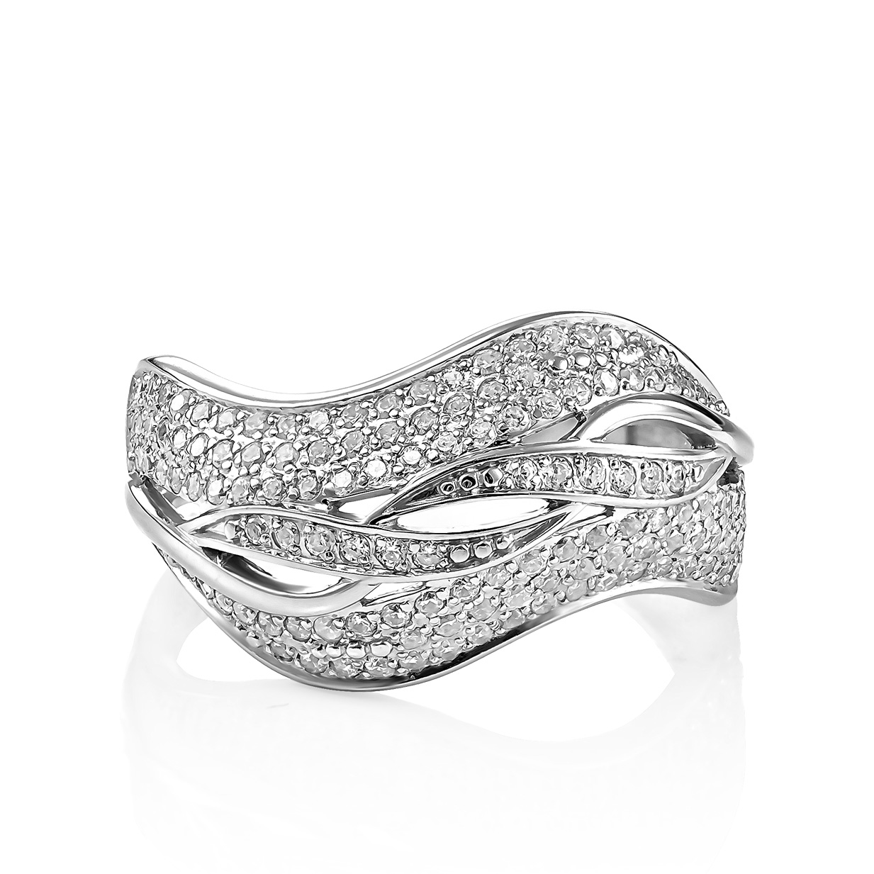 Стильное широкое кольцо, выполнено из серебра 925 пробы с родиевым покрытием, украшено россыпью сияющих фианитов .