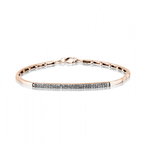 Стильный жесткий женский браслет из красного белого золота 585 пробы, украшенный россыпью сверкающих бриллиантов, — это воплощение элегантности и роскоши