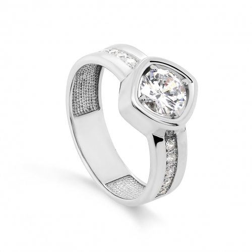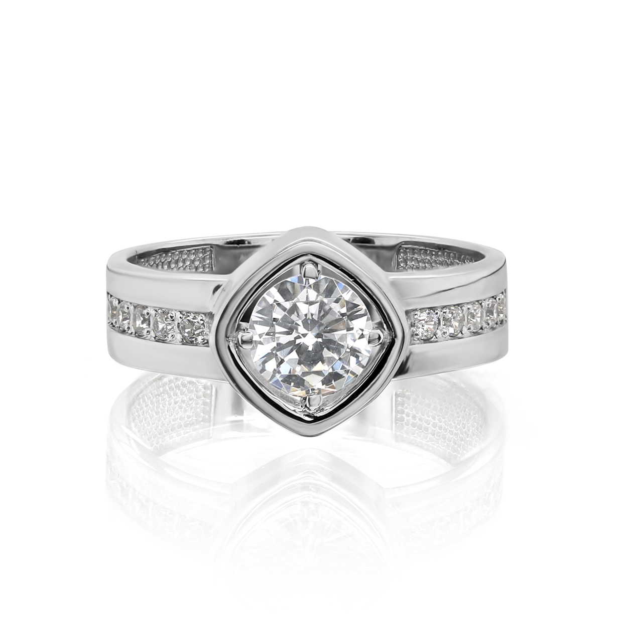 Кольцо, выполнено из серебра 925 пробы с родиевым покрытием, украшено сверкающей россыпью фианитов.