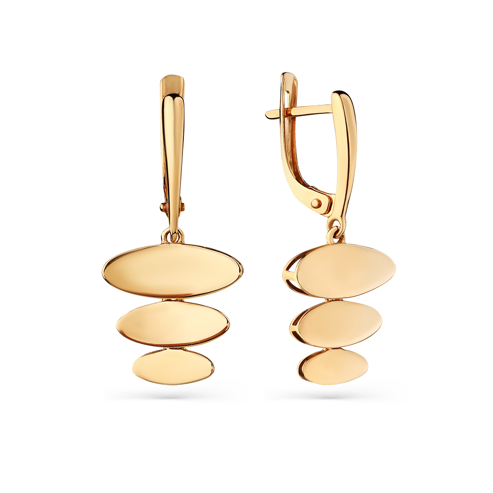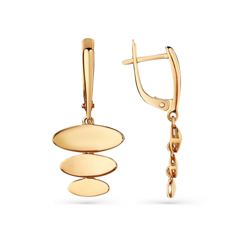 Удлинённые серьги, с оригинальной подвеской из нескольких частей, выполнены из красного золота 585 пробы. Тип замка - английский, самый надежный и удобный. Изделие представлено брендом CARLIN. В комплект поставки входит: