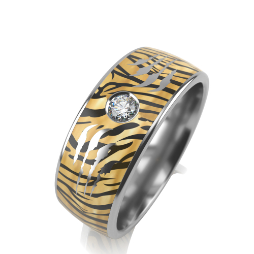 Стильное кольцо, с принтом под окрас тигра, выполнено из серебра 925 пробы, с покрытием керамики и сияющим фианитом. Фианит не выступает относительно поверхности, за счет глухой закрепки, она надежно удерживает камень. Смотрится очень эффектно и современно.