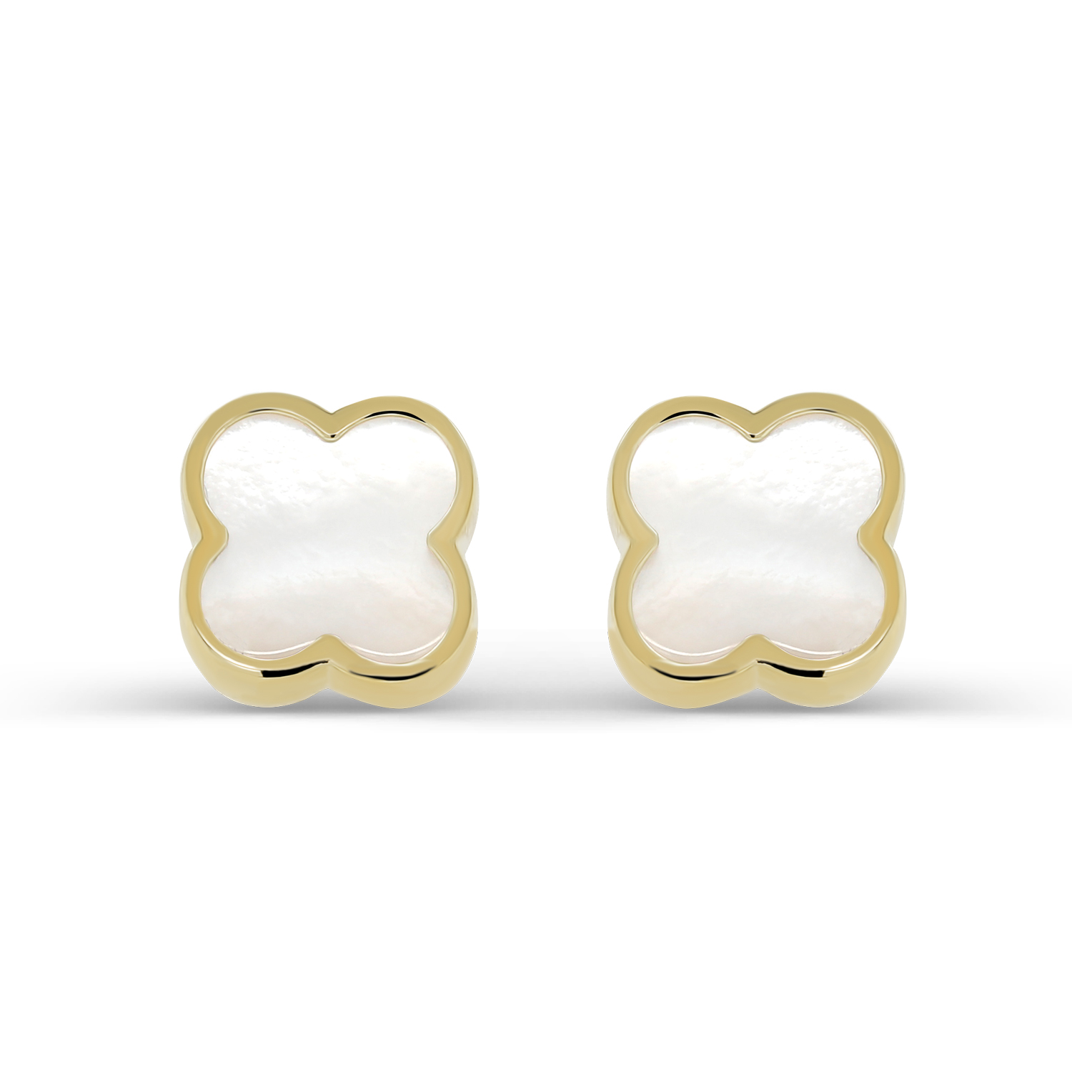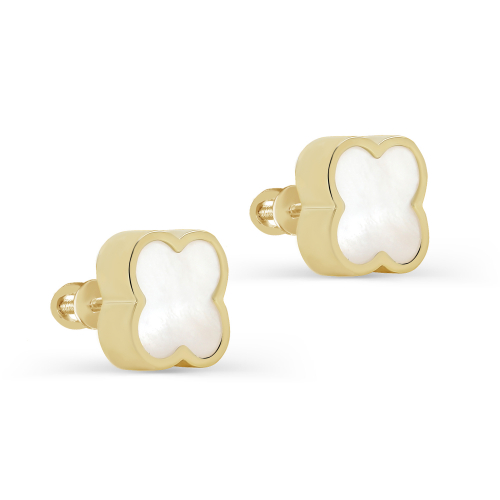 Нежные серьги-пусеты, выполнены из желтого золота 585 пробы, украшены перламутром