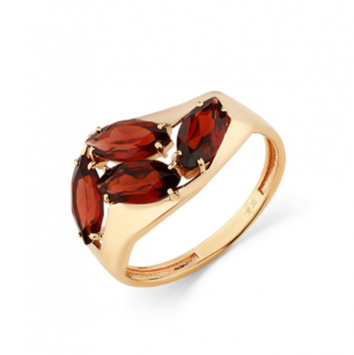 Кольцо выполнено из красного золота 585 пробы, украшено гранатами оригинальной формы огранки "Маркиз"