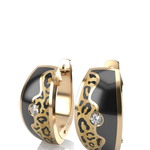 Стильные серьги из желтого золота 585 пробы с бриллиантами и керамикой