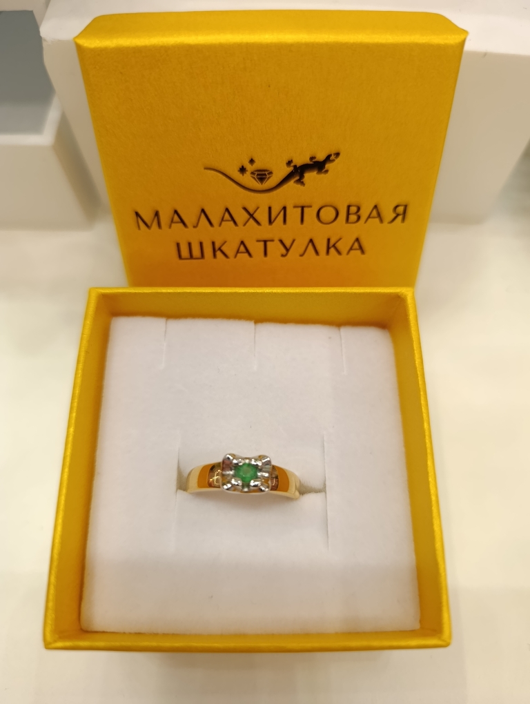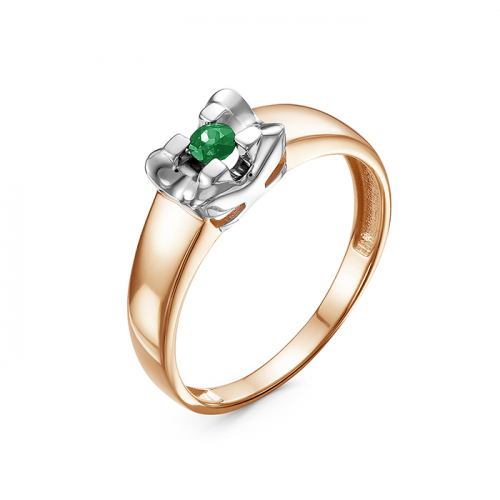 Роскошное кольцо, выполнено в сочетании красного и белого золота 585 пробы, украшено великолепным изумрудом