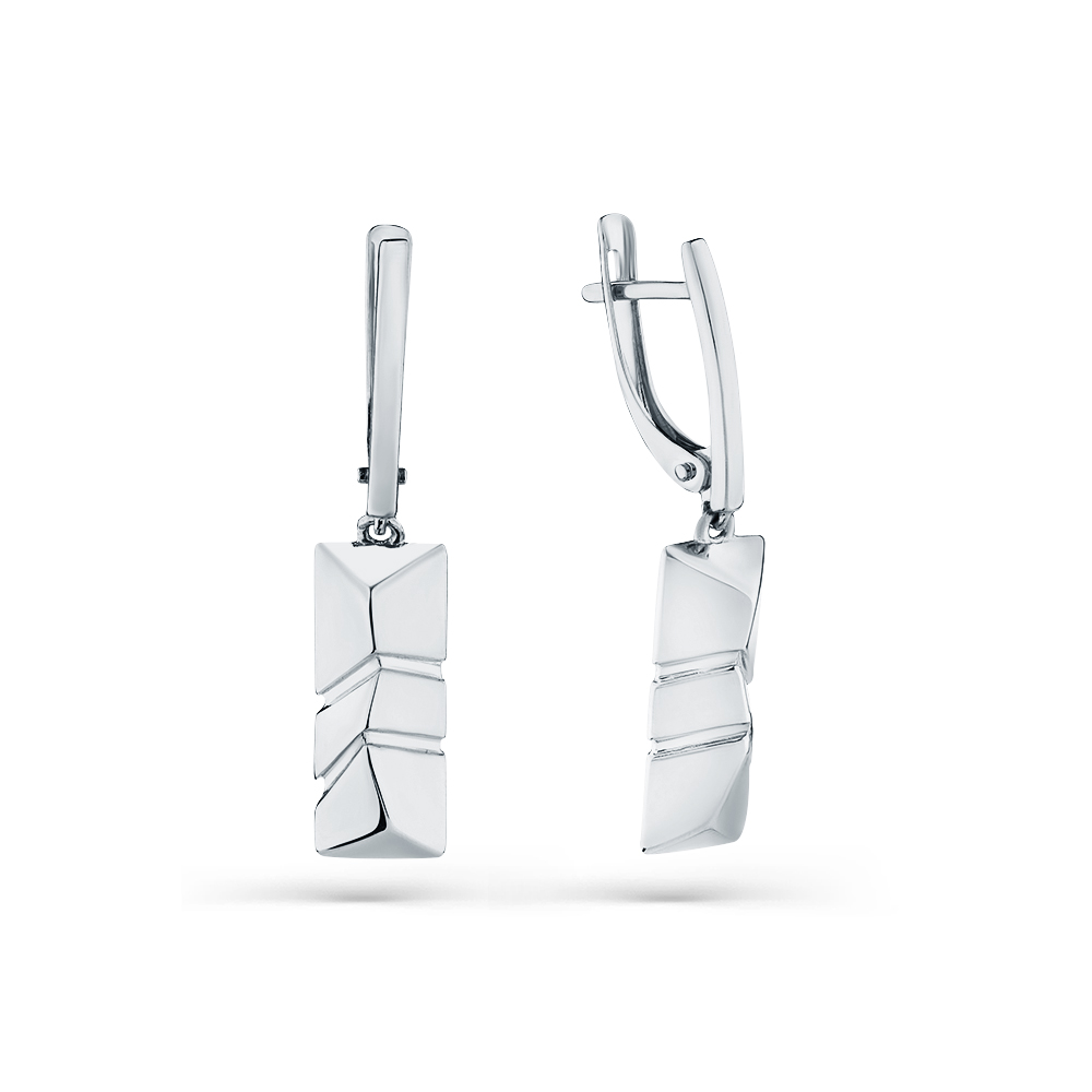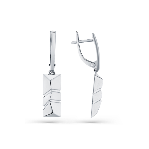 Удлинённые серьги в геометрическом стиле, выполнены из белого золота 585 пробы